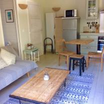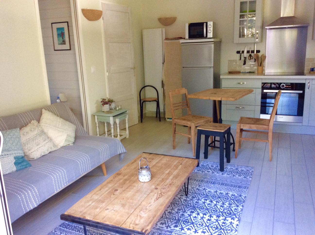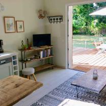 Tout en jouxtant la maison des propriétaires, elle jouit d’un cadre intime et indépendant et propose un deux-pièces tout confort au charme « bassin ».